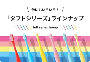 歯ブラシの柄はカーブしているほうがよく磨けそうに感じますが、実はその逆。当てにくい場所が出てきてしまい、特に奥歯や歯の裏側などに磨き残しができてしまいます。シンプルで動かしやすいまっすぐなカタチのほうが、細かいところまでしっかり磨けるのです。また、歯ブラシの持ち方は人それぞれ。タフト24はいろいろな持ち方ができるので、誰でも上手に磨けます。